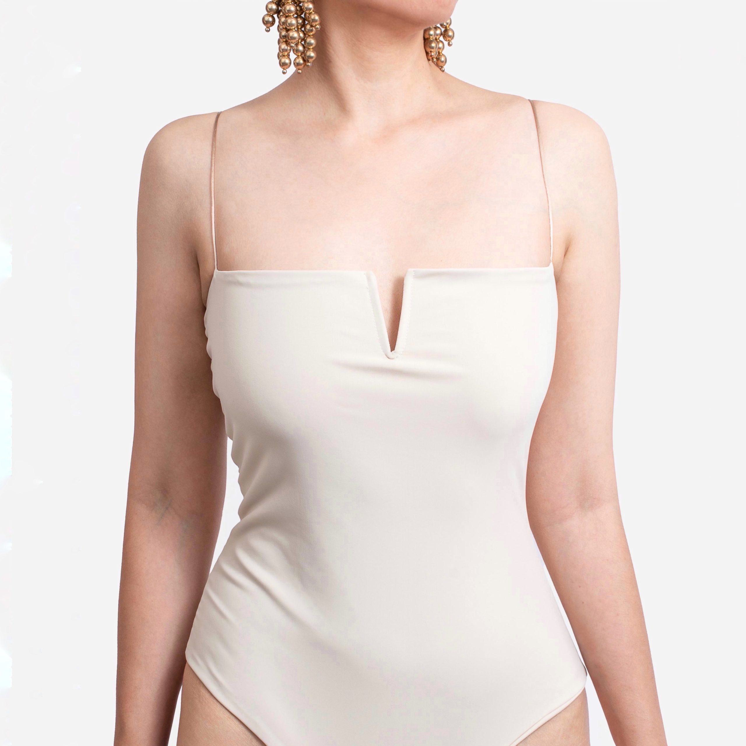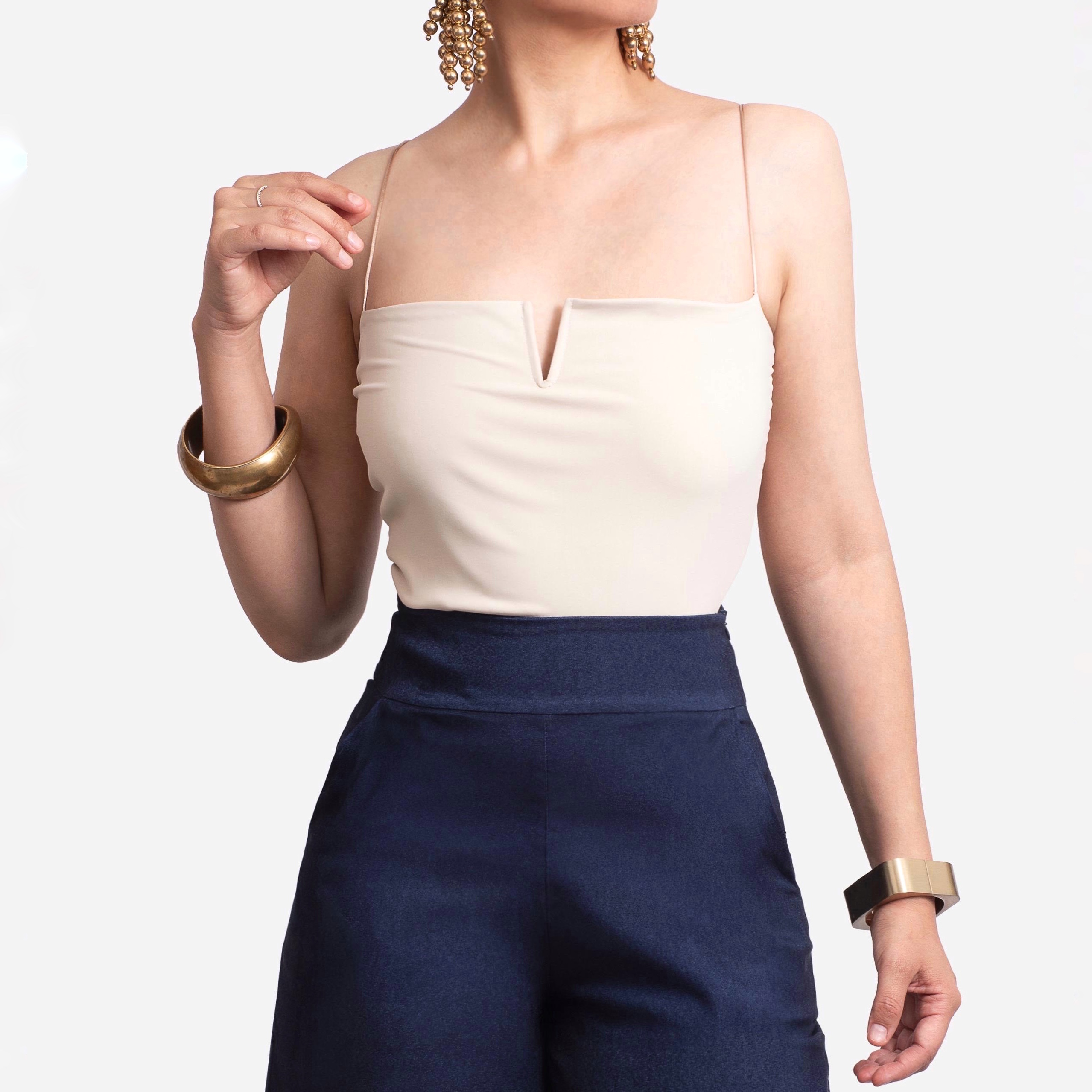Un body cómodo y suave, confeccionado en una tela elasticada. Su diseño limpio con tirantes finos de satín y escote sutil otorgan un look casual pero distinguido.